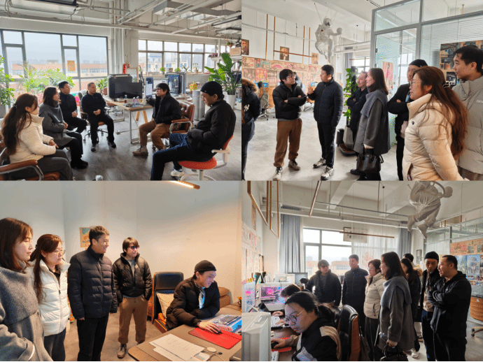 学院一行实地走访调研了天纵创想(北京)影视文化传媒有限公司制作区,详细了解企业运营模式、业务布局及人才需求。李明总监对学院一行表示热烈欢迎,全面介绍了公司整体运营情况及高校人才引进规划,对当前开展的AI漫剧制作进行了重点介绍,并对新闻与数字传播学院长期以来为企业输送优秀专业人才表示感谢。